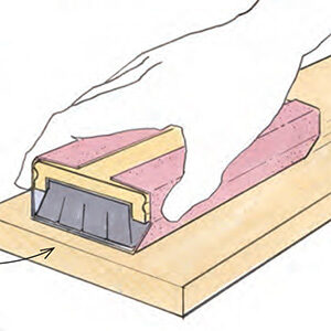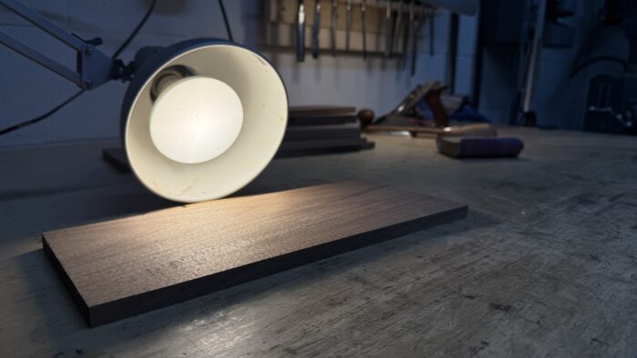 Raking light just means shining light across the surface instead of straight down. You’ve probably tilted a board under a ceiling light to catch scratches, that’s the idea. At a low angle, flaws fall into shadow and stand out. In the shop, though, every project is different. You can’t just lift a cabinet or heavy tabletop up to a light, and moving lights around the shop is a pain, not to mention looking inside cabinets or drawers would be almost impossible. That’s what led me to design this tool.