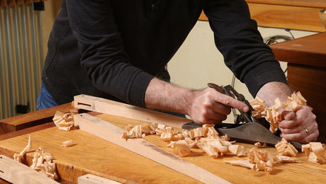 Host Tom McLaughlin is joined by Fine Woodworking’s Mike Pekovich to make a beautiful tea box out of the dark and exotic wenge wood. He then contrasts that with a spectacular figured…