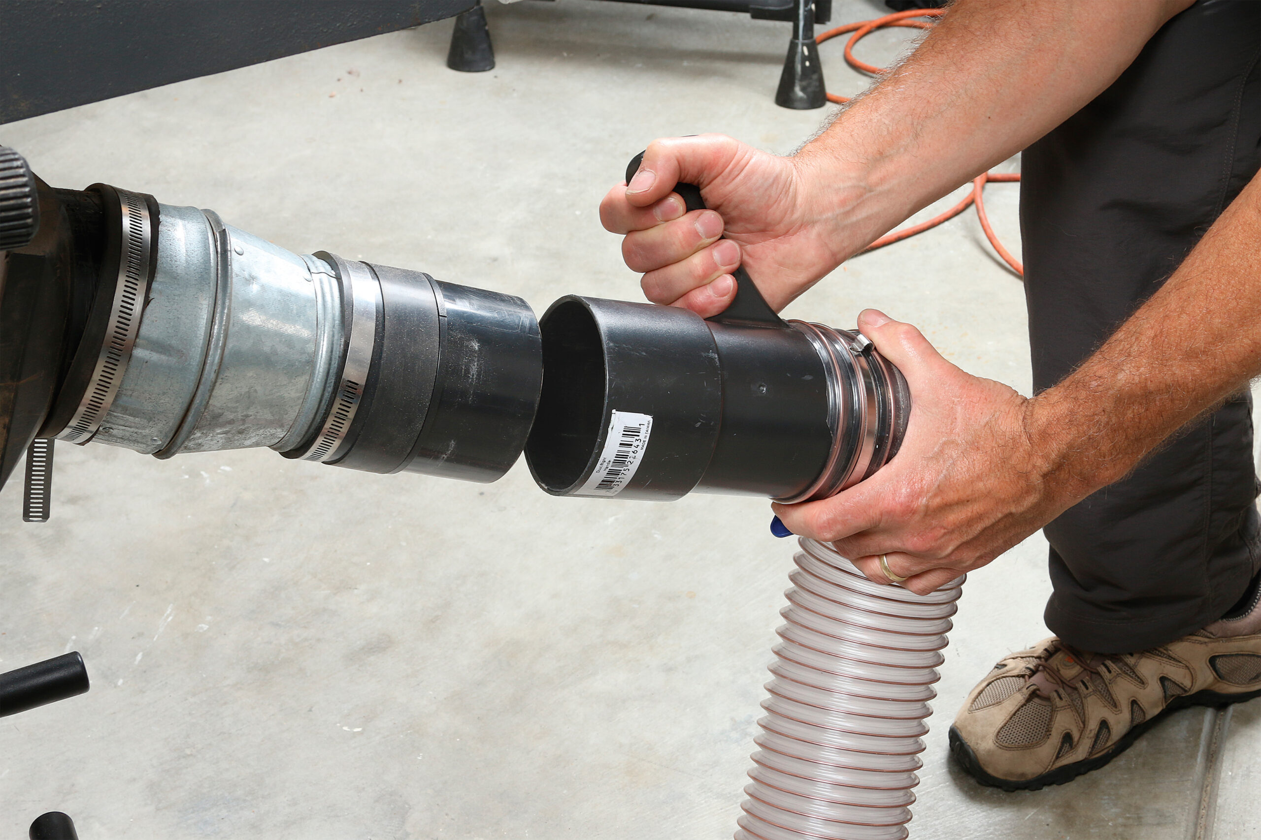 The wider diameter hose and large air volume created by a dust collector make it the right choice for big machines that create a lot of large, heavier sawdust particles and chips.