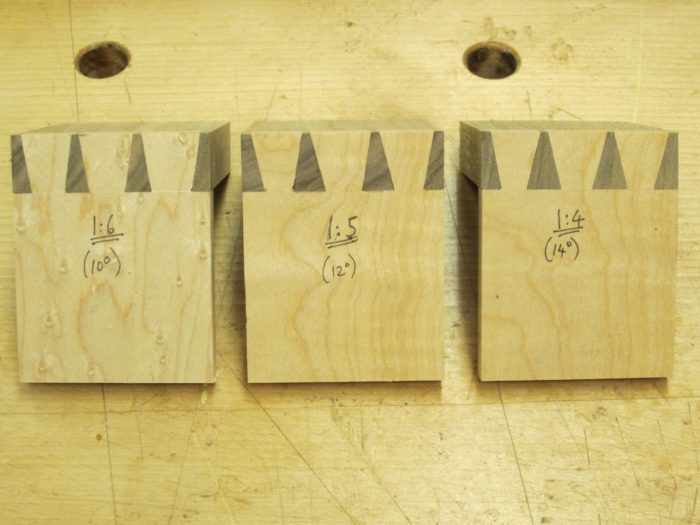 "I ordered an 8 degree blade, but it turned out closer to 8.5, which is not a problem. It's a somewhat shallow angle because I cut a lot of dovetails in thicker casework. A school I teach at has 10 degree blades which are fine as well."