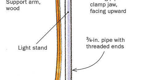 Once while I was gluing multiple pieces of edging onto an octagonal table, the crisscrossing pipe clamps kept interfering with each other. A few years later I figured out a way to adapt the clamps that not only solves my original problem but, more importantly, lets me extend the clamps to almost any length. This method allows just a few clamps to replace a whole stack of pipes of different lengths. And the whole system fits into a shoebox.