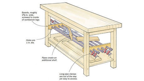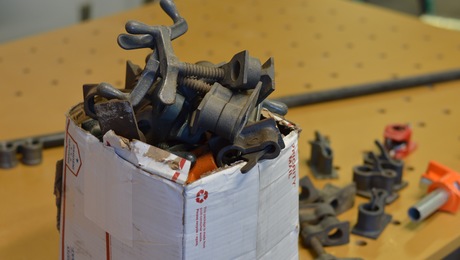 This pipe-clamp adaptation allows just a few clamps to replace a whole stack of pipes of different lengths. And the whole system fits into a shoebox.![]() |