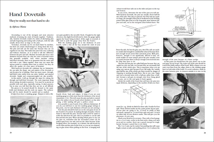 In this classic article from 1976, Alphonse Mattia explains how to cut through and half-blind dovetails by hand; not much has changed!
