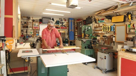 After 30 years of living in a house in Vancouver, B.C., Alan McIvor decided to convert the single-car garage into a shop.Synopsis: After 30 years of living in a house in Vancouver, B.C., Alan McIvor decided to convert the single-car garage into a shop. The small space forced him to consider every decision carefully, but he has been able to build many large pieces of furniture in it. The shop is anchored by the table saw and its outfeed/assembly table, with other machines on the perimeter.