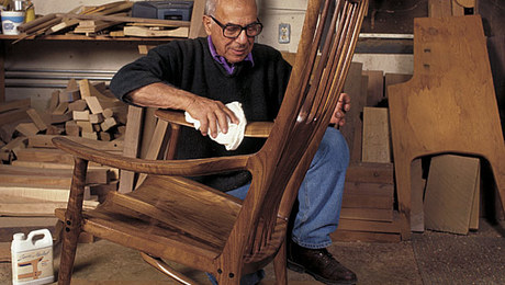 Maloof’s skill as a craftsman was best appreciated at the bandsaw, which he played like a violin as he free-handed S-curved slats, arms, and rockers, breaking every rule of standard bandsawing. “Don’t do it like I do,” he said. “I only do it this way because I didn’t know any better.”