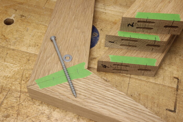 I planed bevels that taper from 3/16 in. at the joint out to almost zero at the toe and the top of the column. Dry-assemble and perfect the matchups, then add some glue and drive the screw.