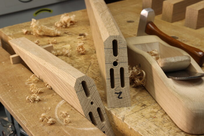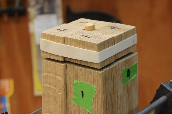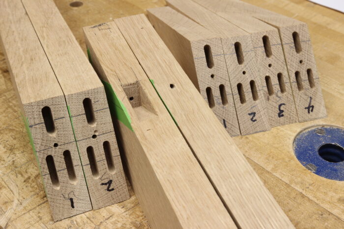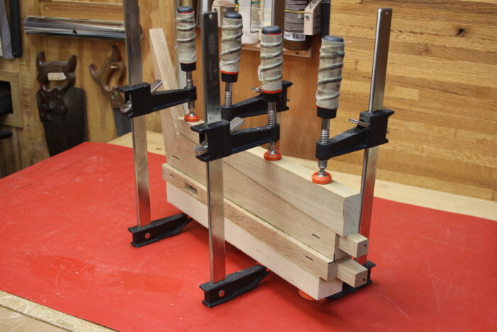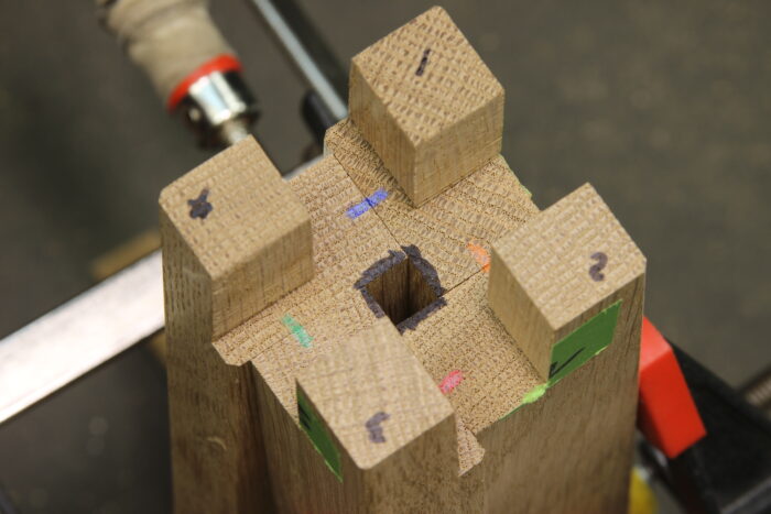 In the next post, we’ll make top supports and drawbore them to the column. Then we’ll make the top and finish up.