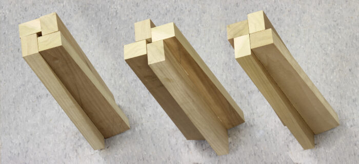 I used a heavy tenon at the ankle where there is the most depth and shorter twins below. Flipping the work makes the twins self-centering, but the single large tenon is not. Be careful to keep your reference surfaces straight!