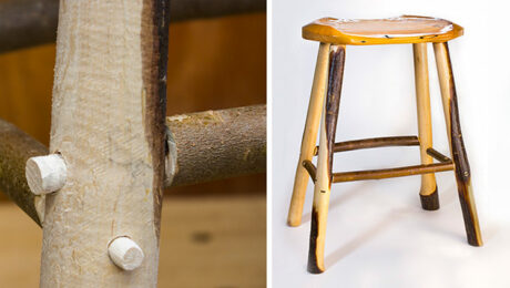 Be careful not to drill out through the bottom of the leg. Or don’t be—it will be hidden underneath in the end. I used a soda straw as a depth stop.