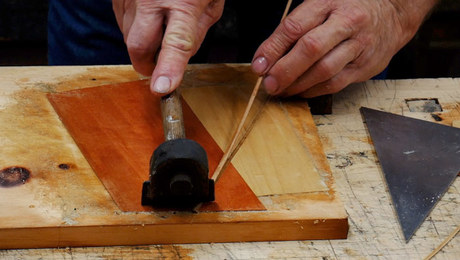 - Hammer veneering with hide glue, using only a veneer hammer—no clamps or vacuum bags