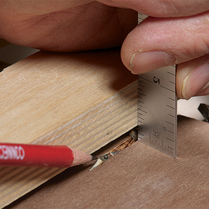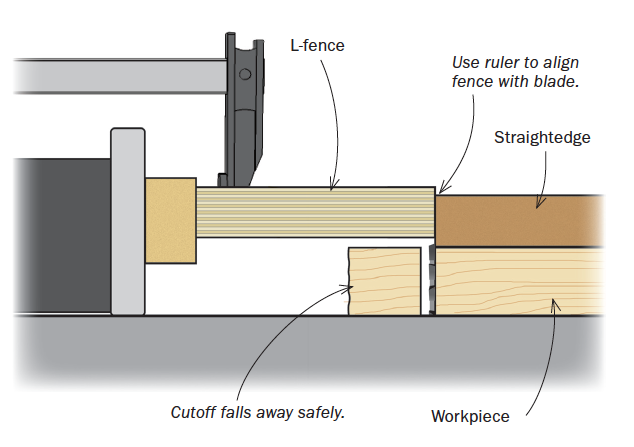 Put a straight edge The L-fence makes it easy to establish a straight reference edge at the tablesaw, safely, in one step. |