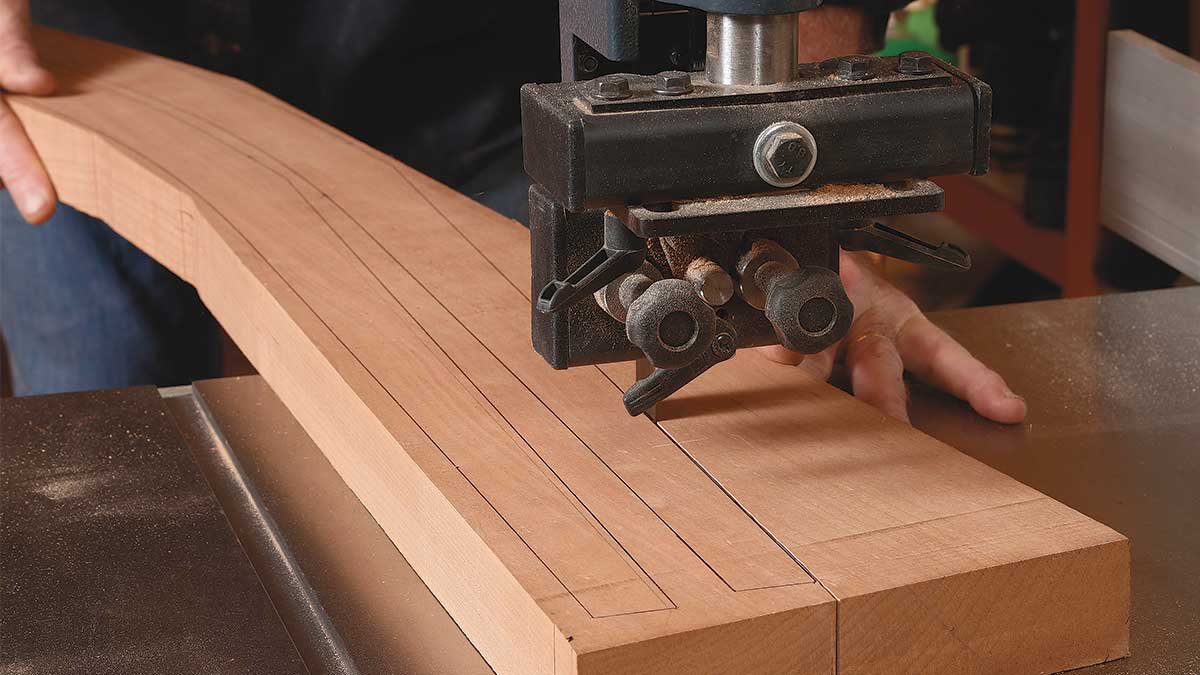 The marking knife excels in this process because of the geometry of its edge. I’ve found the optimal marking knife has a beveled edge on one side and is flat on the other. The flat back is referenced against the shape to be outlined, and the resulting scored line precisely identifies the cut line. I avoid knives beveled on both sides because I find it is less reliable to index a beveled edge against the workpiece being outlined, as the blade can unintentionally drift away slightly or accidentally cut into the piece you are tracing.