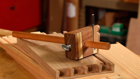 Marking gauges come in many shapes and sizes and are made of wood, metal, or some combination. The traditional types have blocky wooden fences, while some contemporary models are round and solid brass. Assuming good quality, both types work well. It comes down to personal preference. I like the heft of the round style, but I still use the older style, specifically one with inlaid brass wear strips. It’s what I started with, and it has served me well.