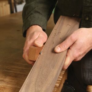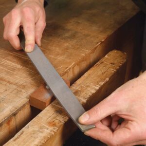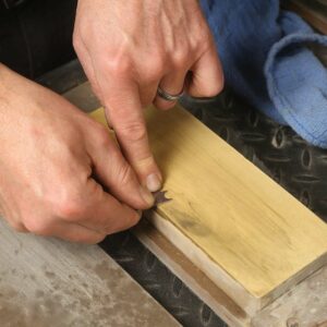 Among the cheapest and most clever tools in existence, the screw stock is simply a slotted wood screw protruding a desired distance from a scrap of wood—that’s it. Just secure the screw into a block of wood and file the head of the screw flat.
