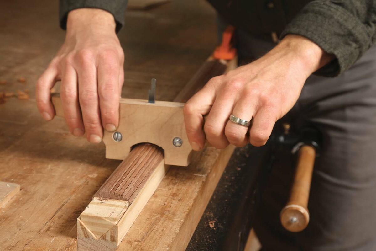 A screw stock is likely the only tool that could make a basic scratch stock seem pricey. Small beads with nice full profiles are easy to make with a scratch stock on straight and curved edges alike. You make the cutter by using a round file on scraps of steel harvested from old cabinet scrapers or sawblades. It will cut cleanest if both faces and its curved edge are polished on fine sharpening stones or sandpaper. The finished blade can be held in a scrap of wood with a sawn slot and a bolt or two. If scratch stocks have a downside, it’s their tendency—shared by most scraping tools—to struggle in softer woods.