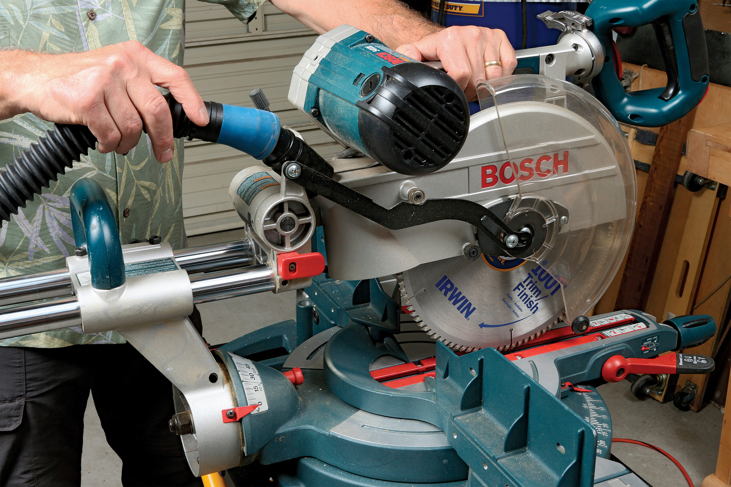 Chopsaws, routers, and biscuit joiners also can be handled by a shop vacuum, which can generate close to 100 cfm. Finer and fewer dust particles don’t require as much air volume. That said, chopsaws are pretty messy no matter what’s hooked up to them because most have not been designed with highly effective dust capturing capability.