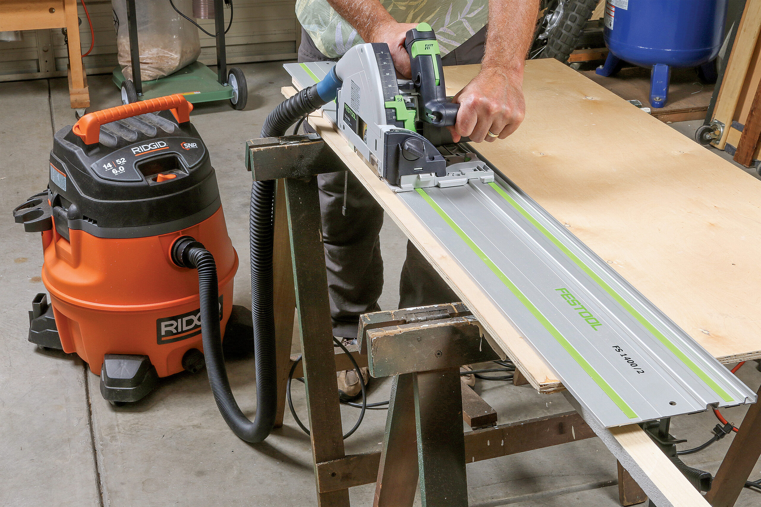 When it comes to managing dust, treat the various machines and tools in your shop differently based on how much dust they create. For stationary machines like the jointer, planer, tablesaw, and bandsaw, use a dust-collection system. But for smaller, handheld tools like the circular saw or orbital sanders, a shop vacuum will do the trick. Round up whatever’s left circulating with an overhead air filter.
