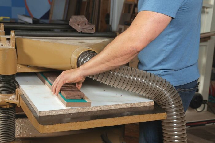 Once the glue is dry, remove the clamps, scrape any excess glue from the surfaces, and go straight to the planer. You also can do this with a hand plane or belt sander if your planer isn’t wide enough; it’s just slower than molasses on a winter day. Remove just enough material from the assembly to get a flat face, then flip the board over and machine the other side to final thickness.