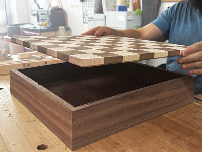 At this point, if you want just the chessboard, feel free to bevel the edges, throw some finish on it, and call it a day. But I’m not going to apply finish now, as I’m not done just yet. No, I’m making a box that will hold my chess pieces and will act as an elegant pedestal upon which I can display this cornucopia of figured-maple goodness.