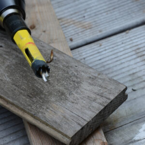 Sometimes, all the more surgical extraction methods fail, and your last resort is to cut around the fastener and remove it with the wood surrounding it. Depending on the fastener’s size, a few tools can help with this process.