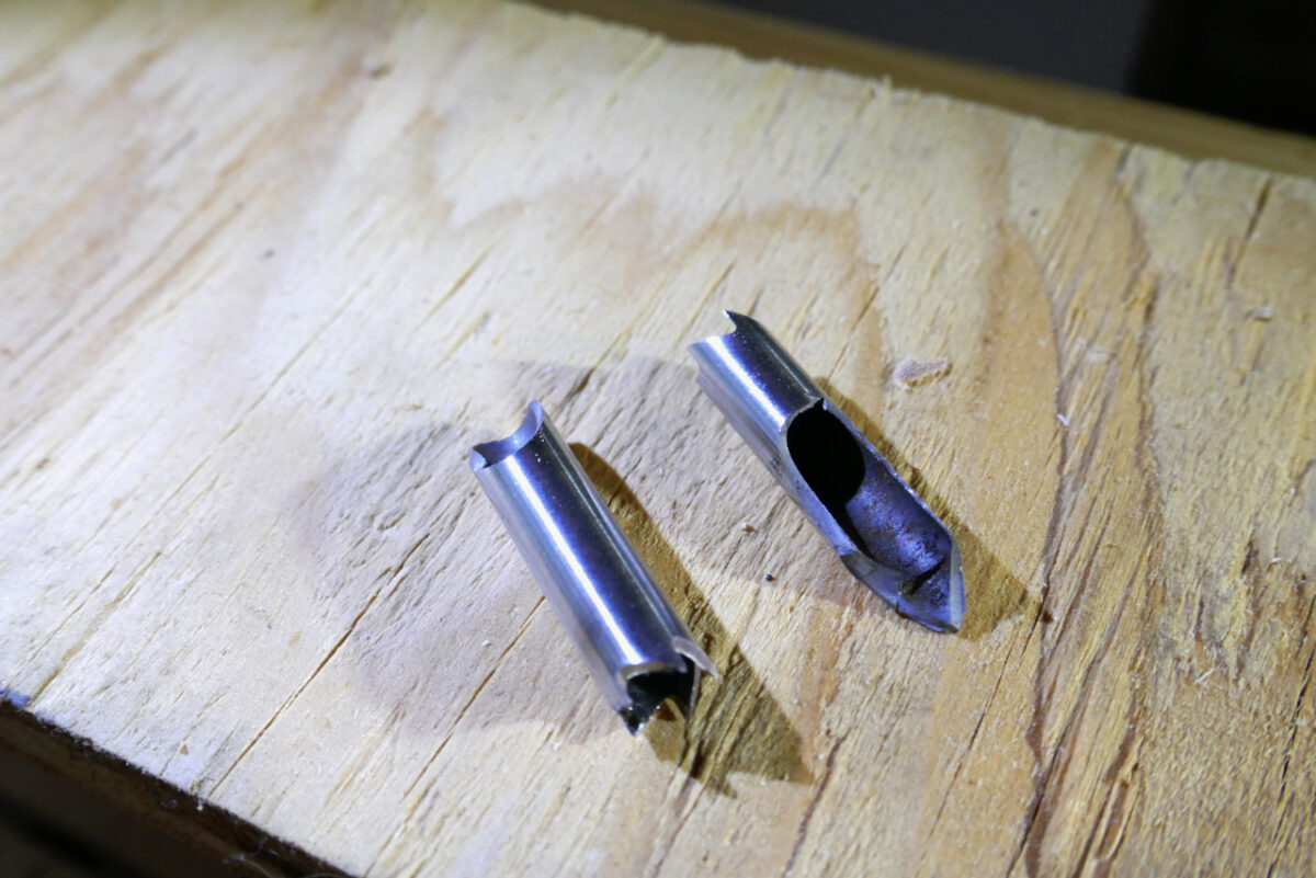 A high-speed steel (HSS) toothed boring cylinder is highly effective for smaller fasteners. This tool’s utility spans from removing fasteners that break off inside furniture parts to fasteners embedded in reclaimed boards. Learning how to use it correctly will help you across the woodworking spectrum. However, there’s a catch—this tool requires precision to work correctly.