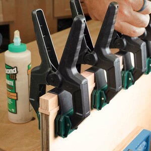 Once while I was gluing multiple pieces of edging onto an octagonal table, the crisscrossing pipe clamps kept interfering with each other. A few years later I figured out a way to adapt the clamps that not only solves my original problem but, more importantly, lets me extend the clamps to almost any length. This method allows just a few clamps to replace a whole stack of pipes of different lengths. And the whole system fits into a shoebox.