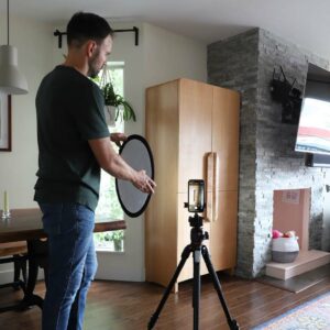 Step 2. I photographed the mock up from the same approximate view. This was difficult because it required moving the camera in order to fill the frame with the mock up. I placed paper under the model to make it easier to outline in Photoshop later. It also provided an idea of how the shadow on the floor would look.