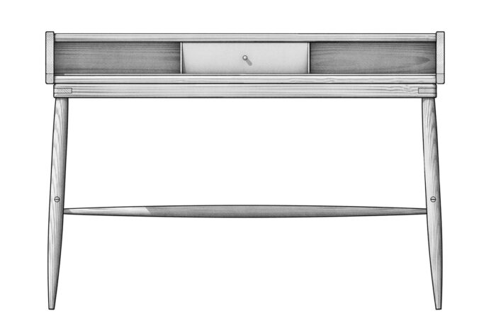 Everyone needs a desk at home for paying bills, doing homework, working from home, and more. Desks have evolved as technology has changed. In the days of inkwells, pens, and paper, a desk typically was packed with cubbyholes, drawers, and cabinets for writing supplies. When computers came along, a desk had to include spaces for large monitors, hard drives, and printers. Today, our tech is smaller, so desks have shrunken in kind. In this chapter you’ll find all types of desks—from classic 18th-century pieces full of storage and ornamentation to modern desks that spare the decoration and oversized storage spaces—so you will easily find a project that works for you or that can be customized to suit your needs.