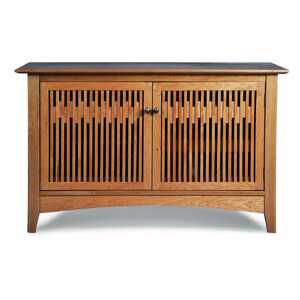 Pfeffer is passionate about photography as well as furniture, and his black-and-white cabinet was designed to store camera gear. Its color scheme and its panel with a field of tiny pyramids reference the light, shadows, and contrast that are so key to photography.