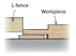 Put a straight edge The L-fence makes it easy to establish a straight reference edge at the tablesaw, safely, in one step. |